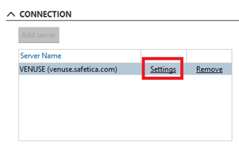- Przejdź do Safetica Management Console > Profil > Ustawienia serwera